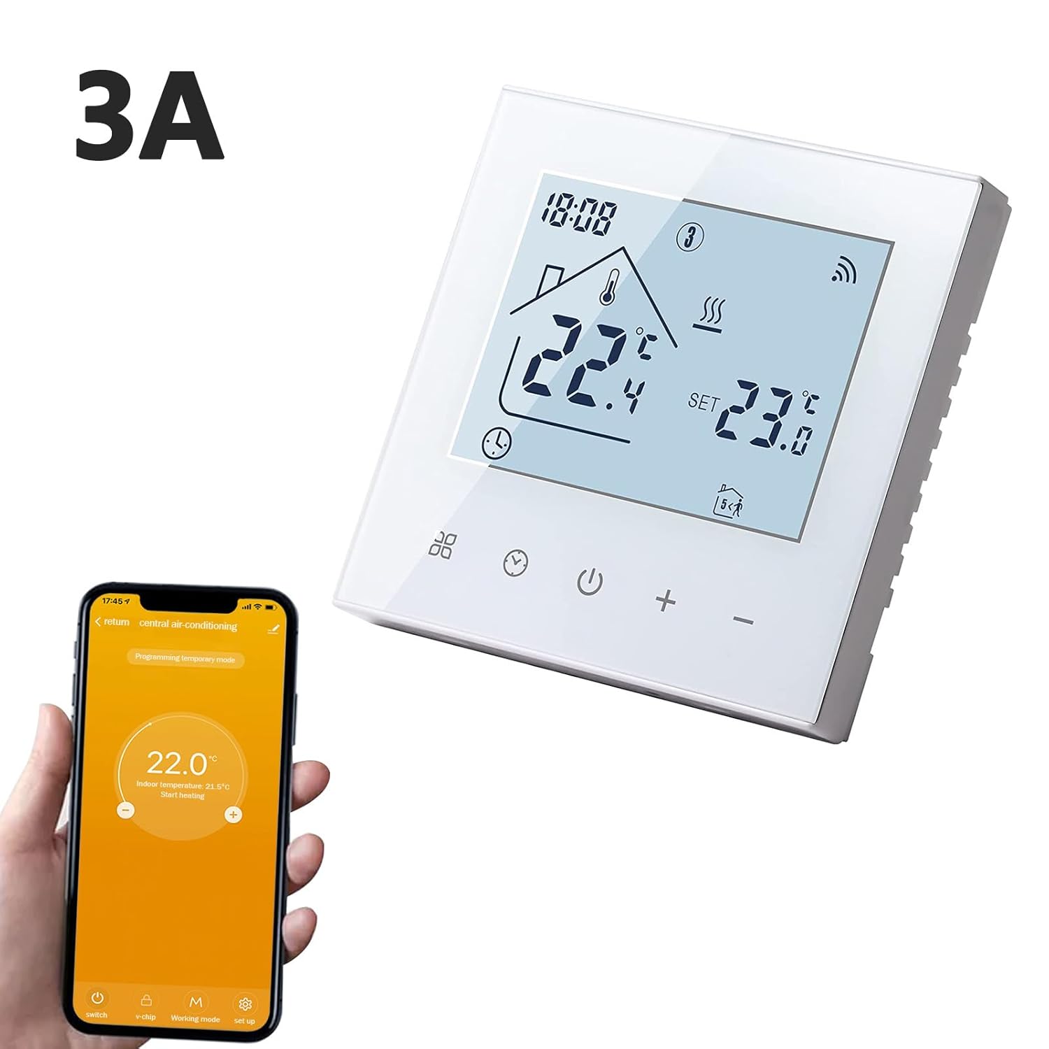 【Calidad superior】La carcasa del termostato está hecha de ABS de alta calidad y materials de PC ignífugo, un cuerpo resistente al desgaste adecuado para una variedad de estilos de vida modernos. Soporta corriente máxima 3A, voltaje 100-240V.