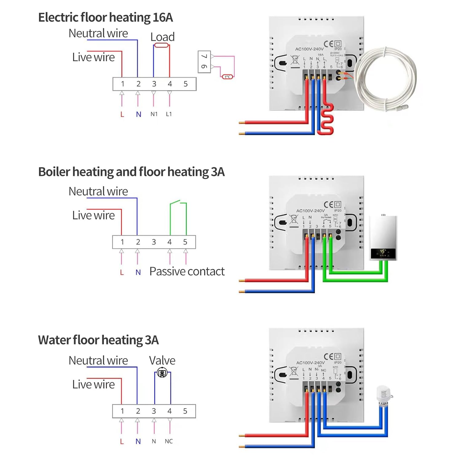 【Escenarios de aplicación】 El termostato inteligente WiFi es la mejor opción para el management de la temperatura del hogar, el management de la calefacción por suelo radiante eléctrico y cumple con los requisitos de varios dispositivos de la familia.