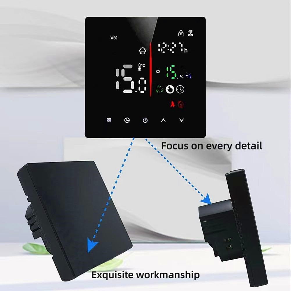 *Management inteligente de temperatura: el termostato inteligente LCD ForTUYA WiFi utiliza sensores avanzados para monitorear la temperatura ambiente, para garantizar que su sistema de calefacción por suelo radiante funcione de manera eficiente y mantenga el nivel de comodidad deseado.