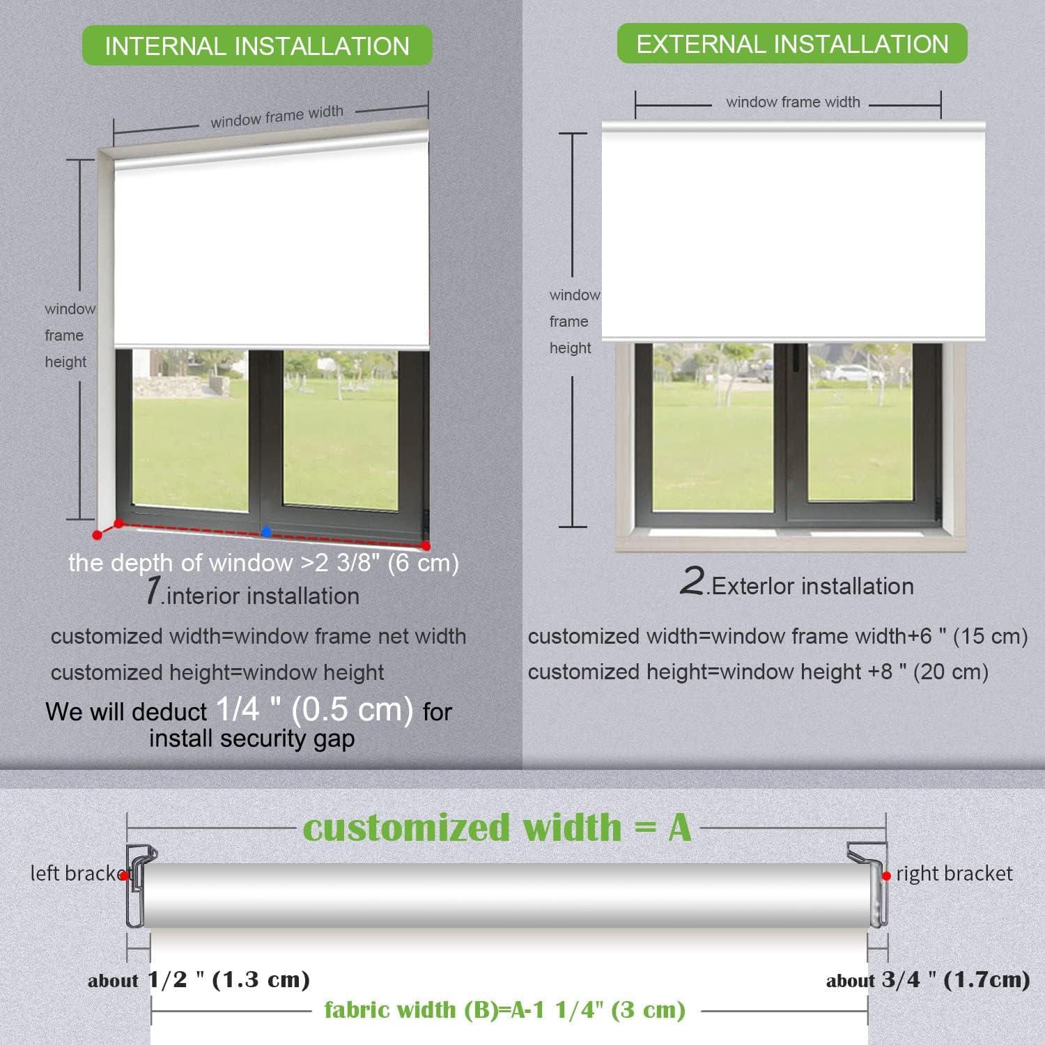 【Hecho por encargo】 el estor Motorizado Inscritable Está Hecho A Medida Con Una Precisión de 0,1 cm, por favor, Sigue las Imágenes de la Guí de Mediciónico en El Lado Izquierdo y Elige El Tamaño Redondeado másproximado. Por Ejemplo, Si Tu Medida es de 110,1 cm de ancho y 180 cm de Alto, Selecciona 120 x 200 cm en el Menú Desplegable Para Pagar.