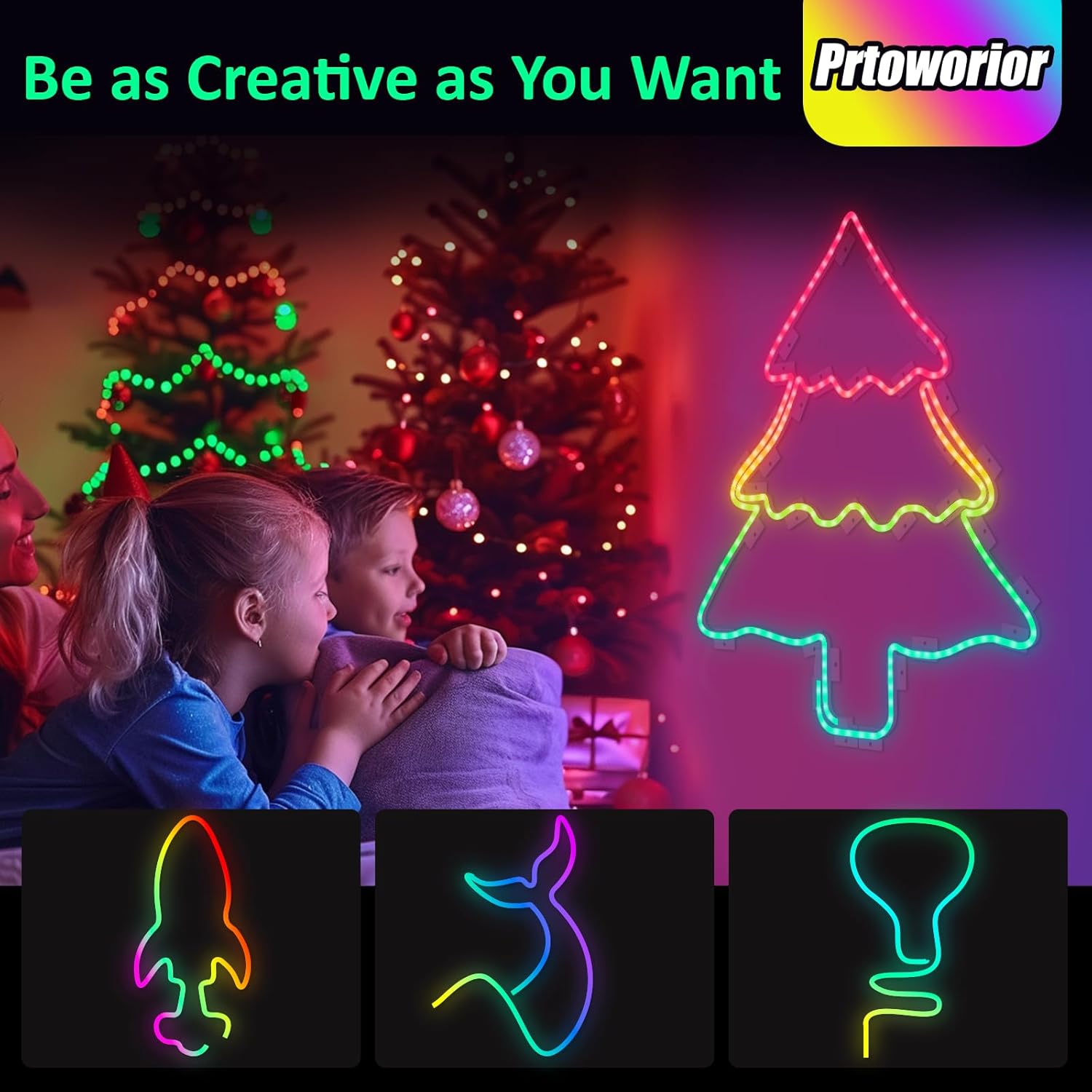 FLEXIBLE Y ALTA CALIDAD: la tira de neón mejorada está hecha de materiales de alta calidad y seguros y perlas de luz, la luz es uniforme y brillante, y los colores claros son vivos. La funda de silicona de la tira luminosa es suave y se puede doblar fácilmente en diferentes formas y cambiar de longitud cortando. Usa tu imaginación para hacer manualidades.
