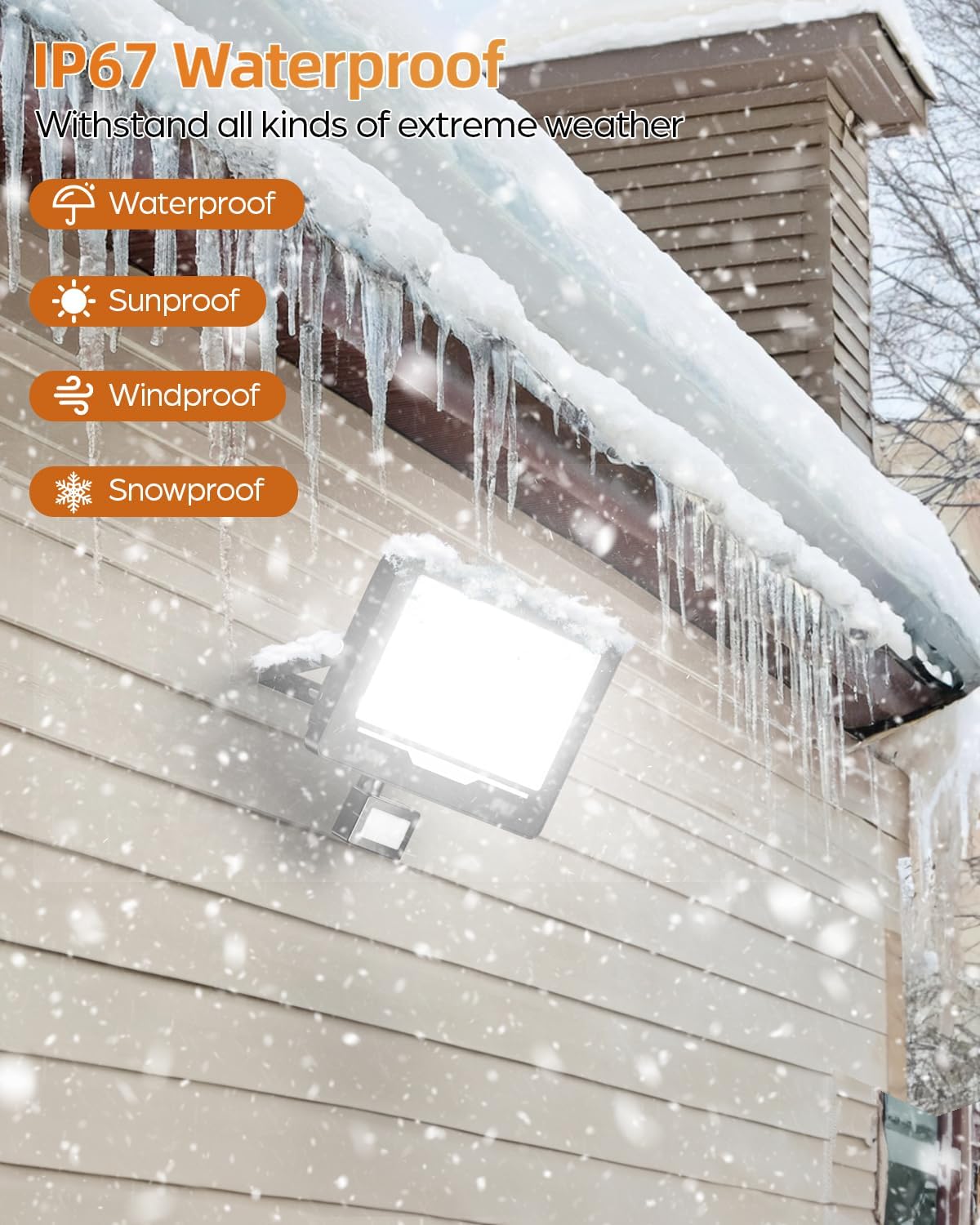 Foco LED Exterior con Sensor de Movimiento IP67: la luz led con sensor de movimiento tiene un voltaje de entrada de 220-240 V y una clasificación de impermeabilidad IP67 significa que no tiene que preocuparse de que el mal tiempo afecte su uso, ya sea en verano o en invierno, puede mantener una iluminación excelente. Efectos y garantizar un funcionamiento estable en diversos entornos.