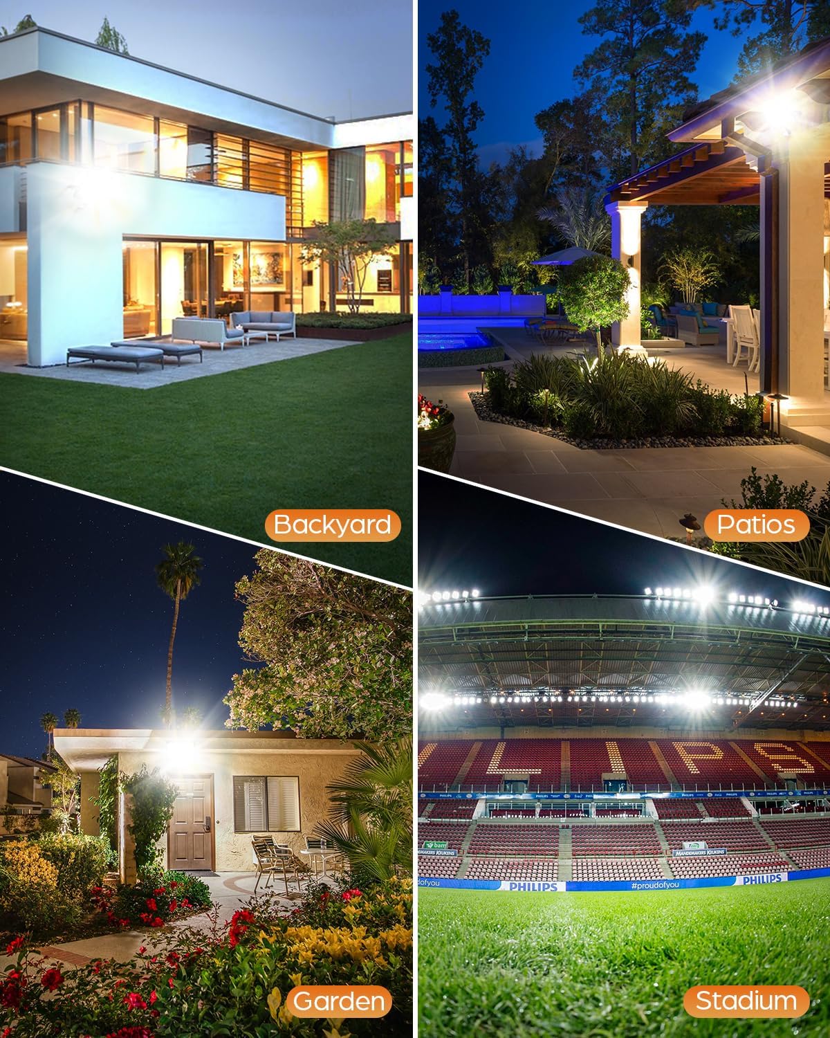 Escenarios de Aplicación de Proyector LED: TOPAUBUB luces led con sensor de movimiento es adecuado para una variedad de escenarios, incluidos patios y jardines al aire libre, canchas para agregar una sensación de seguridad y belleza, lugares comerciales como tiendas y estacionamientos para proporcionar iluminación continua y uso doméstico para iluminar perfectamente. calzadas, porches y otras áreas, mejorando enormemente la sensación de seguridad por la noche.