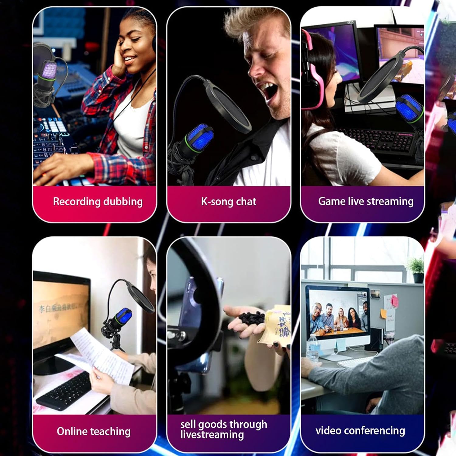 Una amplia gama de aplicaciones Este micrófono Podcast en vivo alcanza una claridad perfecta. Very best para grabación, karaoke, reducción de ruido, juegos, audio, videoconferencias y más. Mejore el profesionalismo con una función adecuada para diversos escenarios de transmisión en vivo.