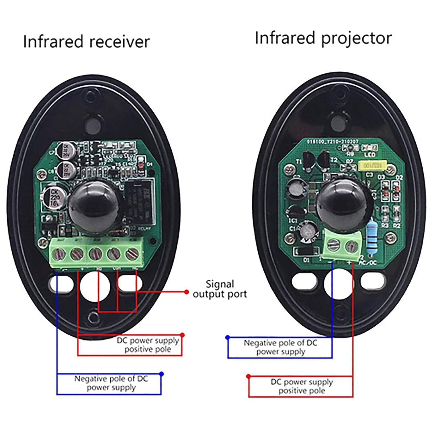 Frecuencia de infrarrojos: 1,92 Khz; Fuente de alimentación: CC 12 V; Longitud de onda: 940 nm. Forma de huevo Forma de huevo, Entrada: RX 15 mA-TX 30 mA, Temperatura de funcionamiento: -10 °C a 70 °C