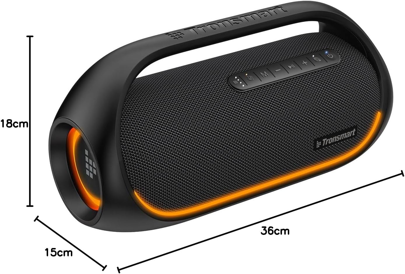 (Altavoz para Fiestas Portátil y A Prueba de Agua Ipx6) Hagas lo Que Hagas y Vayas Donde Vayas, Tronsmart Bang Será un Altavoz Portátil Listo para la Fiesta Con Un Incorporada. Su Avanzada Resistencia Al Agua IPX6 Evita Los Derrames, La Lluvia y Las SalpiCaduras, Siempre listo para Las Las Actividades al Aire Libre. Por favor, no lo pongas o sumerjas directamento en el Agua.