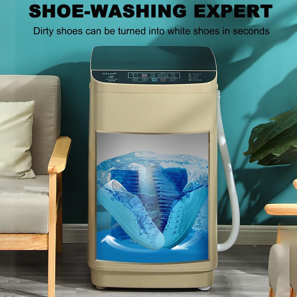 ❤ Lavadora de zapatos multifuncional: La lavadora y los zapatos tienen management de temporizador y se pueden usar como lavadora e hilandero. Con las funciones de lavado, deshidratación y secado, el tiempo de lavado es de 10 minutos, lo que es muy adecuado para aquellos que quieren limpiar rápidamente.