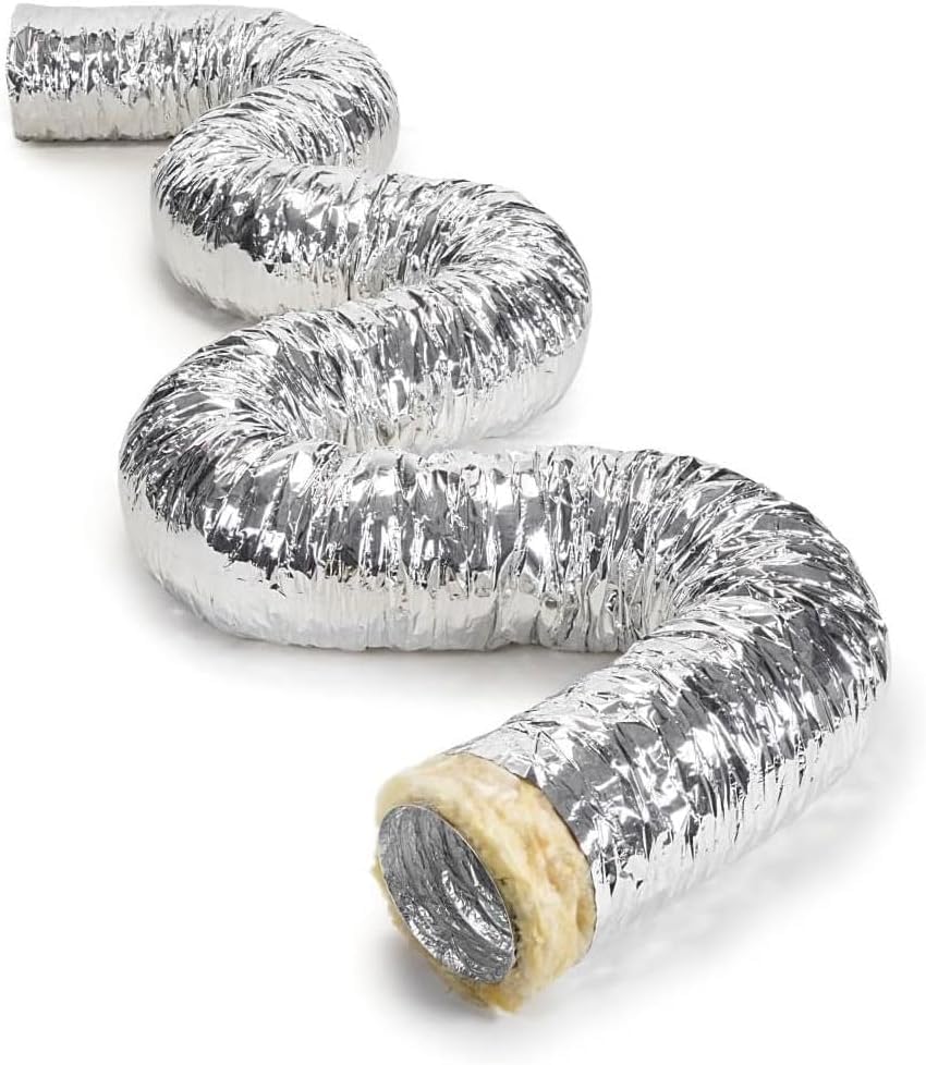 Tubo superflexible round de aluminio y poliéster, con parte central de fibra de vidrio como aislante térmico y acústico. Conducto aislado tipo sándwich compuesto por un tubo inside tipo Ventilwest, un aislamiento intermedio de fibra de vidrio de 25 mm de espesor y una densidad de 18 kg/m3, y una funda exterior conformada por un complejo de aluminio y poliéster. Diámetro: 160 mm. Aplicaciones: Se destina a instalaciones de calefacción y aire acondicionado de viviendas, oficinas, locales comerciales y grandes superficies, and so on. Está especialmente indicado cuando se requiere aislamiento para evitar condensaciones. Se puede emplear tanto en las instalaciones de impulsión como en las de retorno.