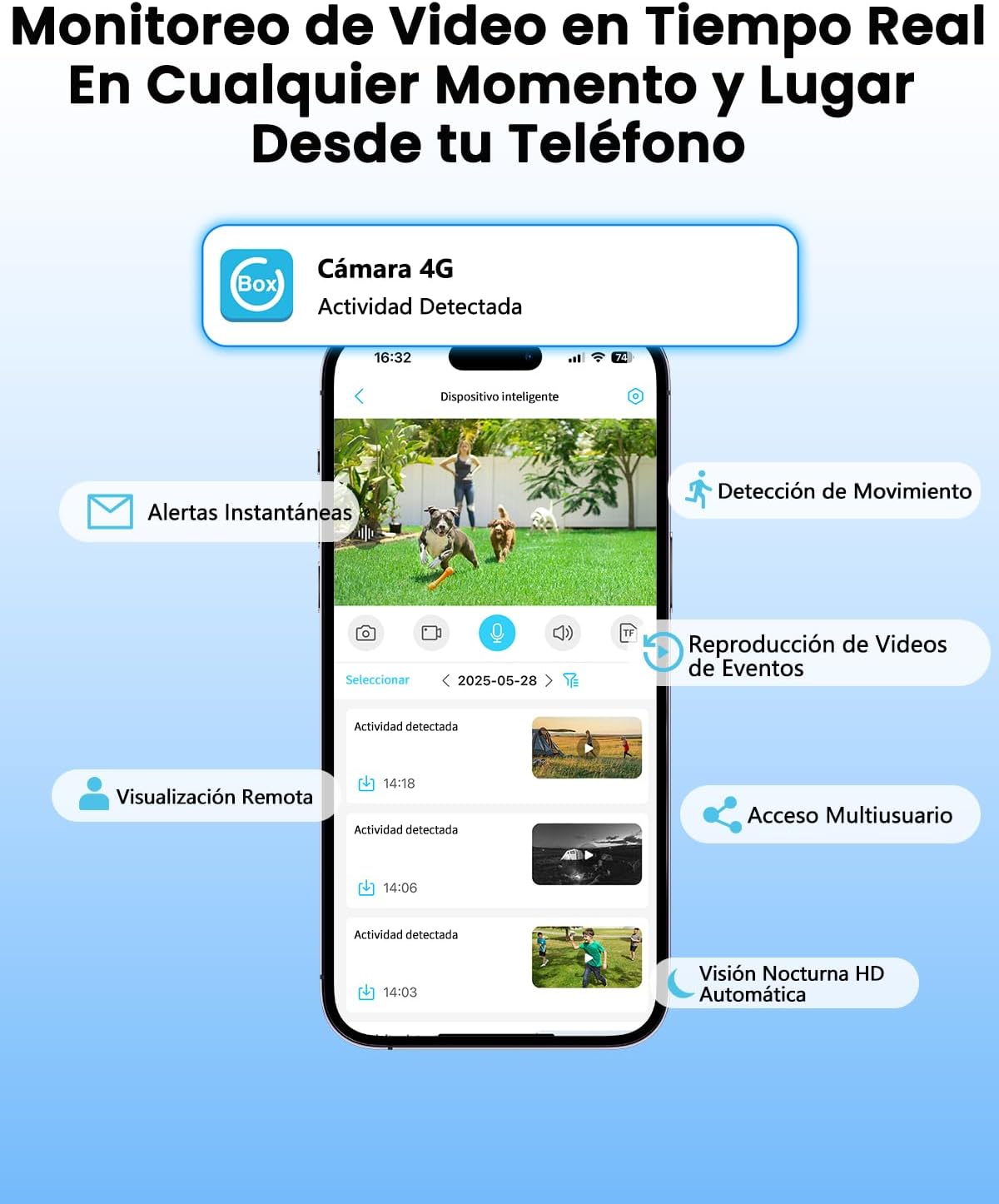 【Con SIM 4G, Plug & Play】Equipado con SIM 4G y 7 días de datos ilimitados free of charge: simplemente insértalo, conéctate a la aplicación y comienza a monitorear al instante. Después del período de prueba de 7 días, puedes suscribirte fácilmente a un plan de datos ilimitado a través de la aplicación, sin límites de datos y sin necesidad de Wi-Fi. Appropriate con tarjetas SIM 4G de las principales operadoras como Movistar, Vodafone, Orange, MásMóvil e Iliad, permitiéndote elegir la mejor purple para tu zona.