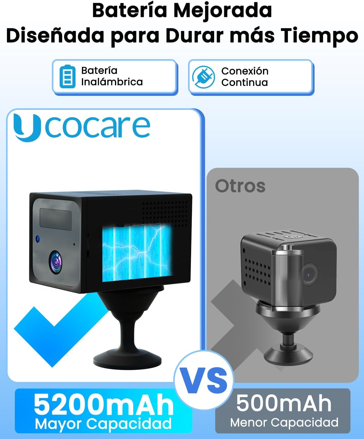 Manténgase seguro en cualquier lugar: batería duradera de 5200 mAh: equipada con una potente batería recargable de 5200 mAh, 10 veces más capacidad que otras minicámaras, la videovigilancia UCOCARE sin Web ofrece seguridad actual y duradera. Superb para uso prolongado en áreas remotas, durante viajes o en entornos fuera de la purple. Con su tecnología inteligente de ahorro de energía, requiere menos recargas, menos esfuerzo y proporciona mayor tranquilidad estés donde estés.