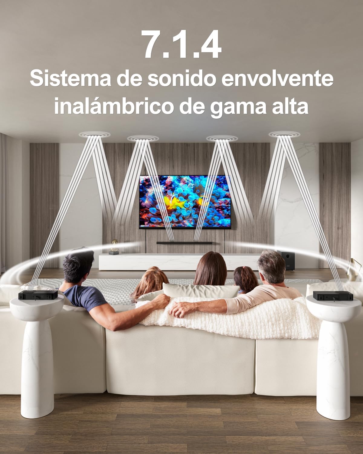 4 Controladores Superiores para alcalde en mersión Aérea: ESTA BARRA DE SONIDO Incorpora 4 Controladores Superiores que reflejan y dispersan el Sonido Uniformente por Toda la Hábitación, Logrando una Renderización precisa Segúnn la Posición y Direción de LAS Fuentes Fuentes. Junto Con 2 Altavoces Traseros Inalámbros mejorados, Que Pueden Colocarse en Cualquier Lugar, El Sistema Proporciona un Sonido Más Rico en Capas, CreeNDO UNA EXPERIENCIA DE AUDIO ENVOLVENTE DE DESDE MULTIPLES DIRECONES.
