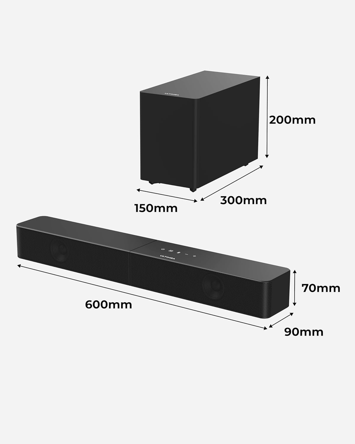 Subwoofer inalámbrico, colóquelo en cualquier lugar: el subwoofer inalámbrico se conecta a la barra de sonido sin cables de audio, lo que le brinda la libertad de colocarlo en cualquier lugar de su habitación para una configuración versatile.