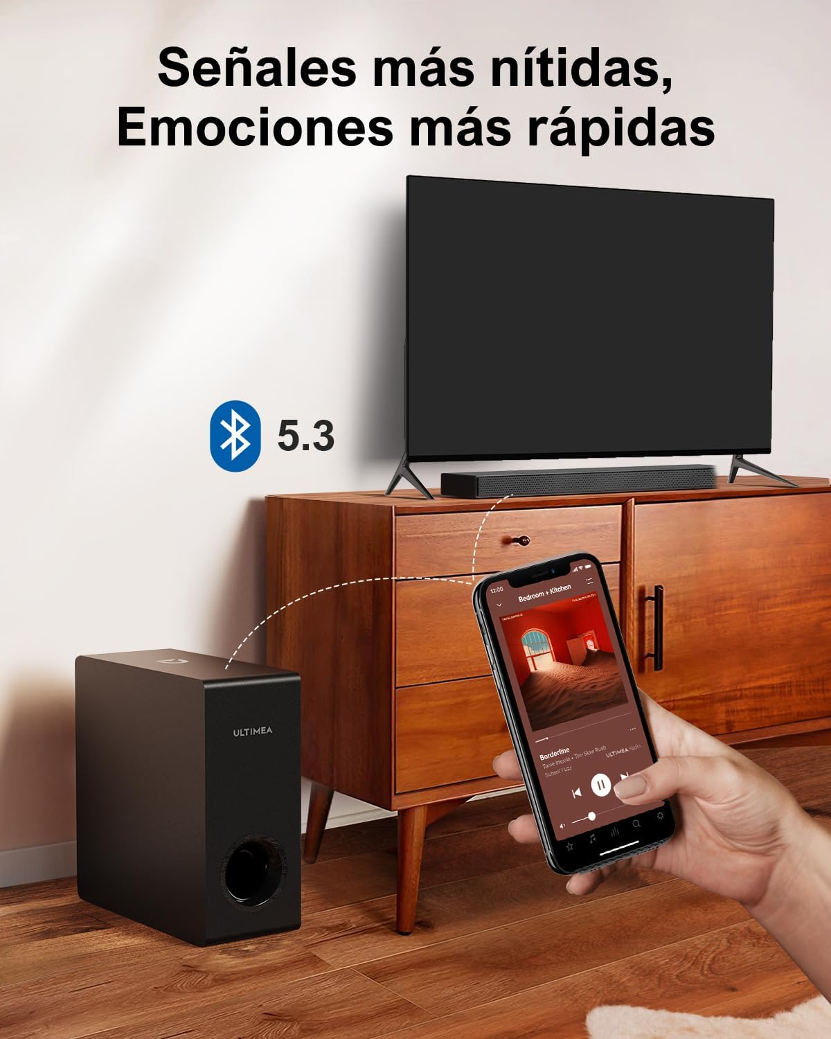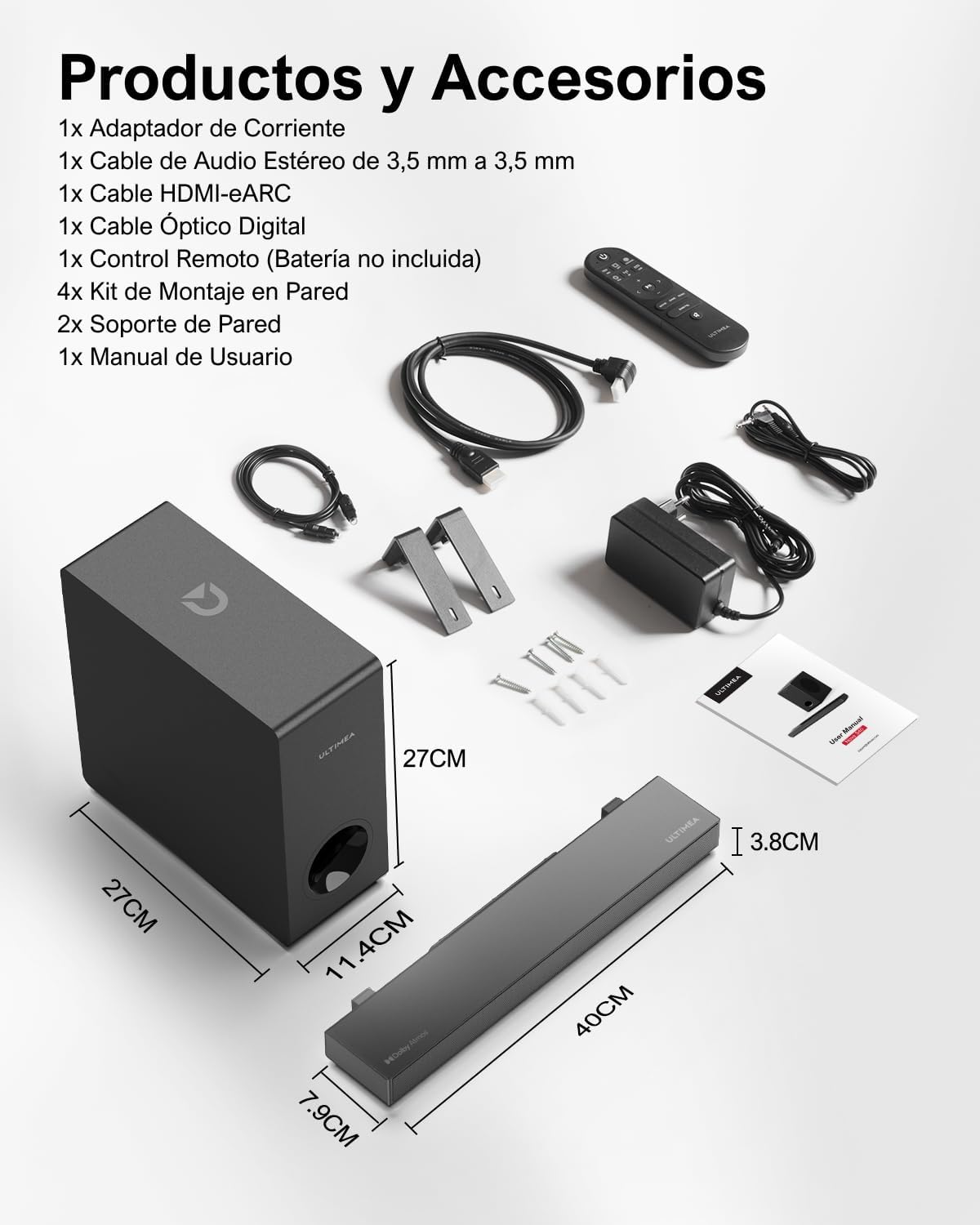 Supera Las Limitaciones de Tamaño, Consigue una Revolución del Sonido: La primera barra de sonido Dolby Atmos de 2.1 canales en un tamaño tan compacto, Ultimea utiliza tecnologías de arquitectura acústica propias para superar las limitaciones de tamaño y aumentar el rendimiento del sonido. Nova S50 ofrece la reproducción de sonido más precisa que se pueda sentir.