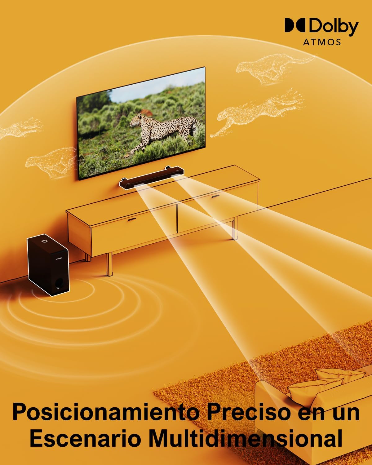 Eleva tu Televisor a Dolby Atmos: Equipado con Dolby Atmos, una tecnología de audio de última generación, el Nova S50 lleva el sonido a nuevas dimensiones. Dolby Atmos ofrece una experiencia de sonido multidimensional, proporcionando una altura digital y un elemento envolvente, llenando la habitación con un sonido fantástico.