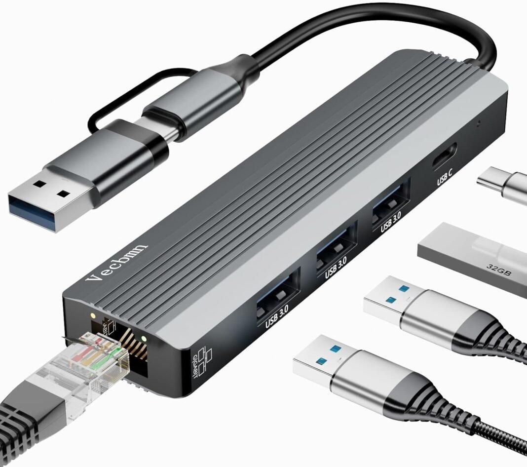 VECBMN Adaptador Ethernet USB, adaptador Ethernet USB C, Grader E-Dapador a U-SB, adaptador U-SB a E-Brenet, A-Dapador RJ45 USB para Home windows XP/Mac/Linux/Chromebook