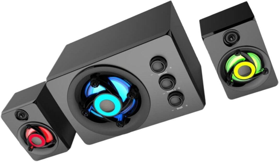 – Efecto de sonido envolvente 3D, sonido estéreo de 2.1 canales, appropriate con reproducción de unidad USB y caja de sonido de graves.