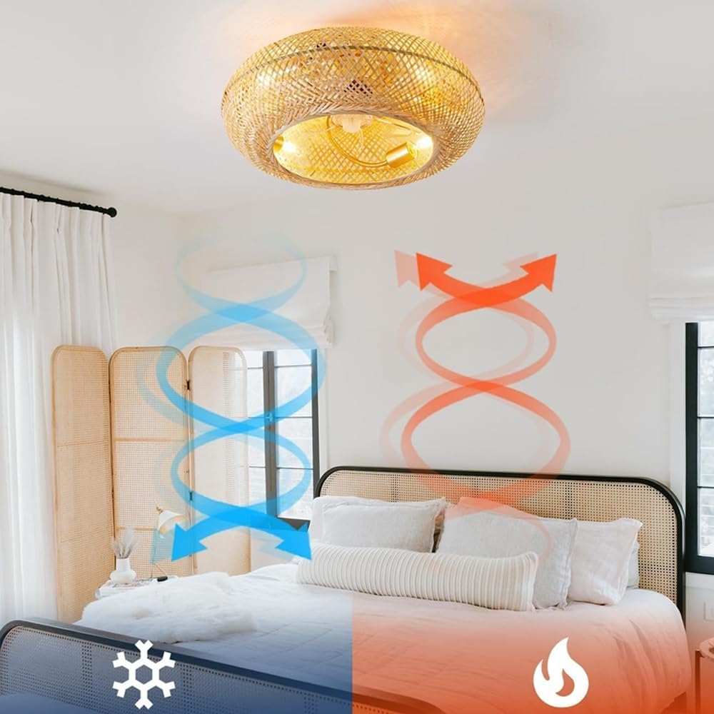El ventilador de techo con iluminación tiene una función reversible única en modo invierno y verano. En el modo de verano, atrae suavemente el aire fresco y trae una brisa refrescante, soplando aire frío hacia abajo en verano y aire caliente hacia arriba en el modo de invierno, hace round inteligentemente el aire caliente y promueve la circulación del aire, llenando su habitación de comodidad y calidez, este ventilador de techo con luz no solo ahorra energía, sino que también es un