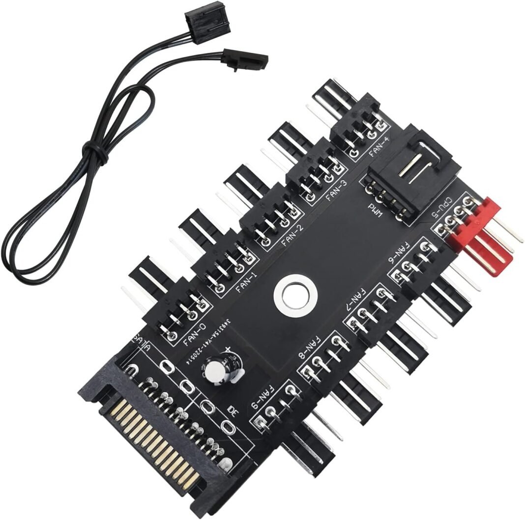Ventiladores de cubo, Ctricalver 12V 4 Pin 10 Canales Divisor de Ventilador PWM, PWM Fan Controlle, Con Puerto Sata/IDE
