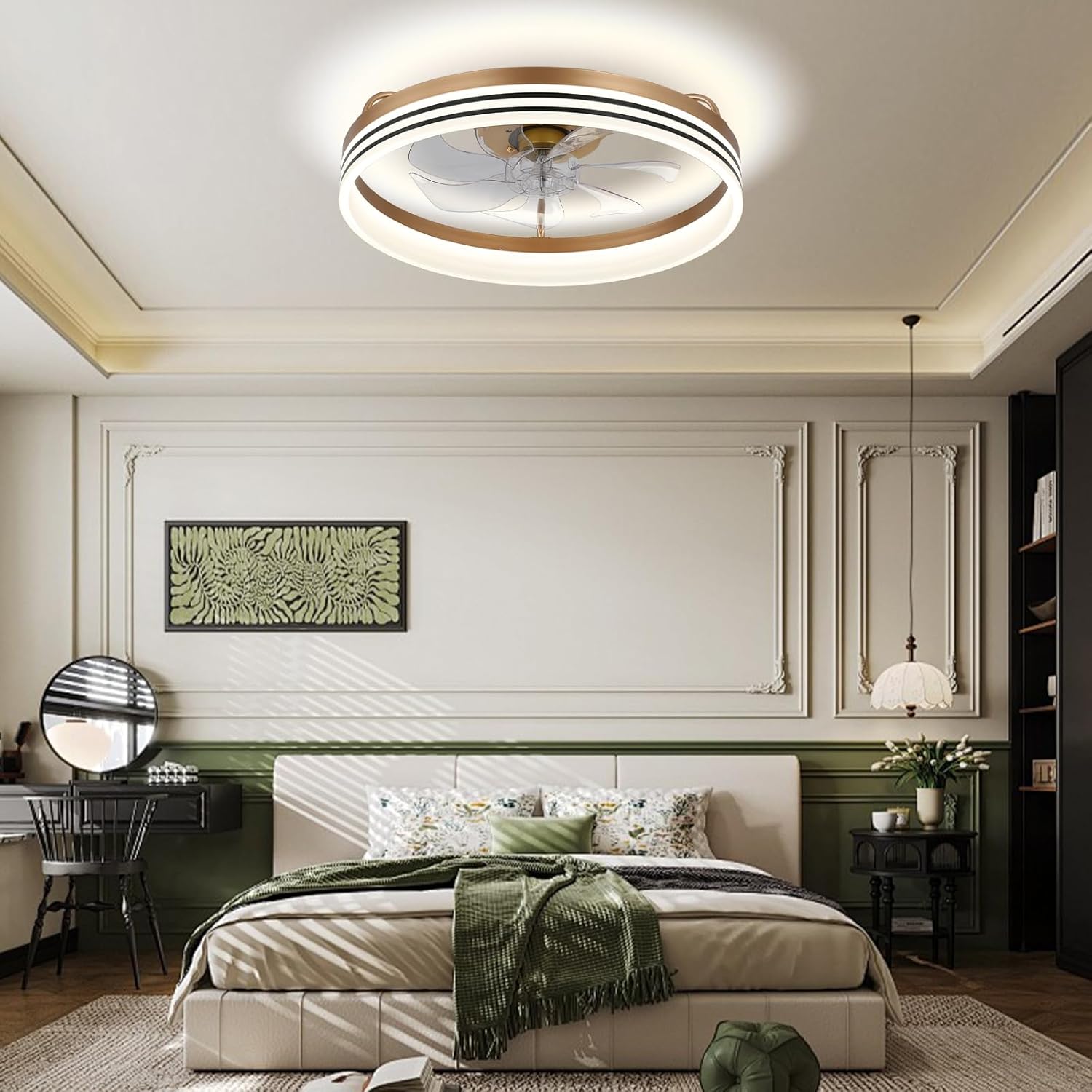 Viento de 6 velocidades sin ruido: Los ventiladores de techo con luces y mando a distancia ofrecen seis opciones de velocidad distintas, que te permiten seleccionar la intensidad de flujo de aire perfecta para tus preferencias de confort. Si usted prefiere una brisa suave o un flujo de aire más robusto, este ventilador de techo de montaje empotrado ofrece ajustes de velocidad versátiles al tiempo que minimizan las molestias por el ruido.