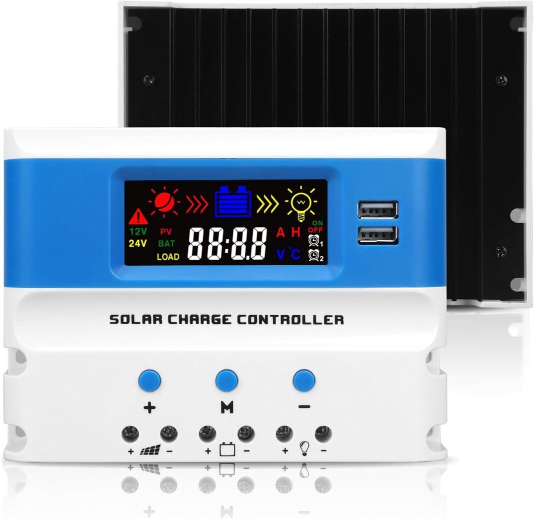 Regulador Carga Photo voltaic Pwm 12V/24V Detecta Auticamete El Voltaje del Sistema de la Batería, Asegurando que la Batería se Carga de forma segura y eficiente, adecuado para una una variedad de baterías, salidas USB duales para la carga del teléfono y otras cargas cargas, cargas, cargas, cargas, cargas, cargas, cargas, cargas, cargas, comedias, comedia, comedia, comedia, comedia, comedia, comedia de baterías, salidas USB duales para la carga del Teléfono y otras de baterías, salidas, duales para la carga del Teléfono y otras. Panel Disipador de Calor de Aleación de Aluminio y Muchos Agujeros para la Disipación de Calor Eficaz. Proteciones de SEIS Con Códigos de Error LCD Proporcionan una completa Seguridad del Sistema Inteligente.