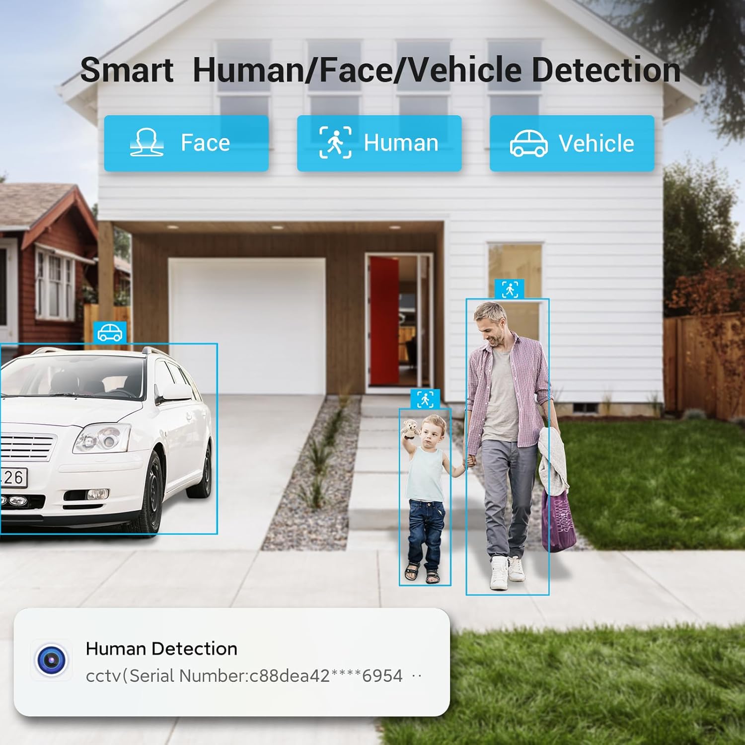 【Identificación Inteligente de Personas y Vehículos】 ESTE SISTEMA DE GRABADORA DVR FUNCIONES DE TIENE DE DETECCIÓN HUMANA, Facial y del vehículo, lo que pude mejorar la seguridad. A Través de Nuestra Aplicación Gratuita, Se Puede Ver y Reproducir en Tiempo Actual en su disposición Inteligente en Cualquier Momento y en Cualquier Lugar