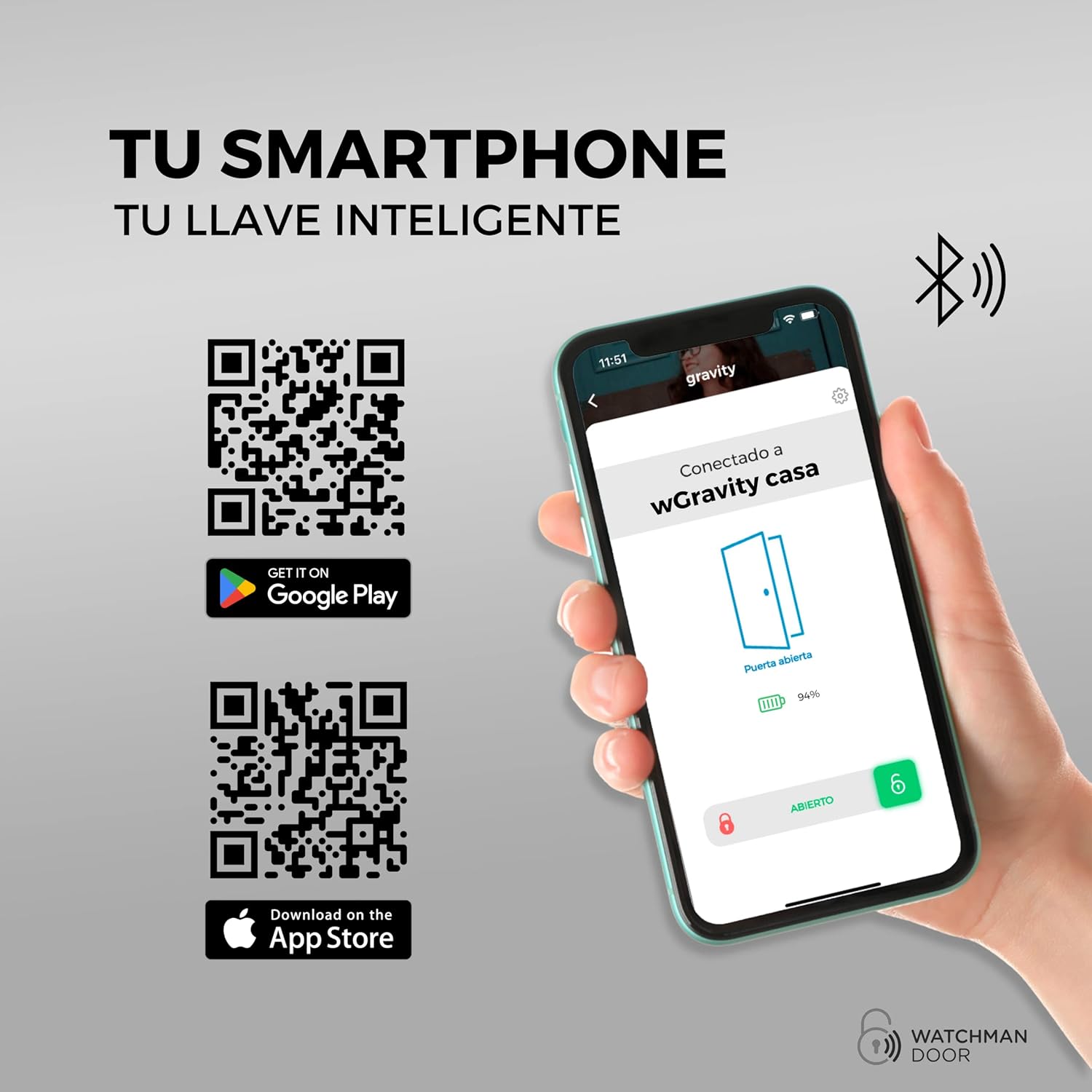 Puerta Watchman Wgravity, Cerradura Inteligente de Alta SEGURIDAD CON POMO Antibumping. Guide de la mediación de teléfonos inteligentes incluyendo alarma y apertura