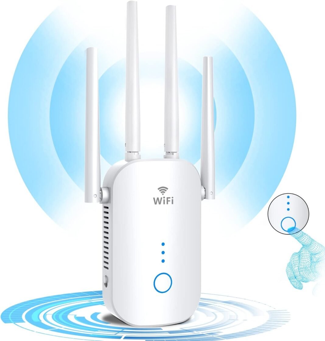 🚀【 Velocidad wifi de doble Banda de 1200 Mbps】 Amplificador Wifi Hasta 1200 Mbps de Velocidad (867 Mbps EN 5 Ghz Y 300 Mbps EN 2,4 Ghz), Puede Disfrutar de Transmisión de Video 4K en Líea, Juegos MultiusuARI Búfer Ni Interrupció.