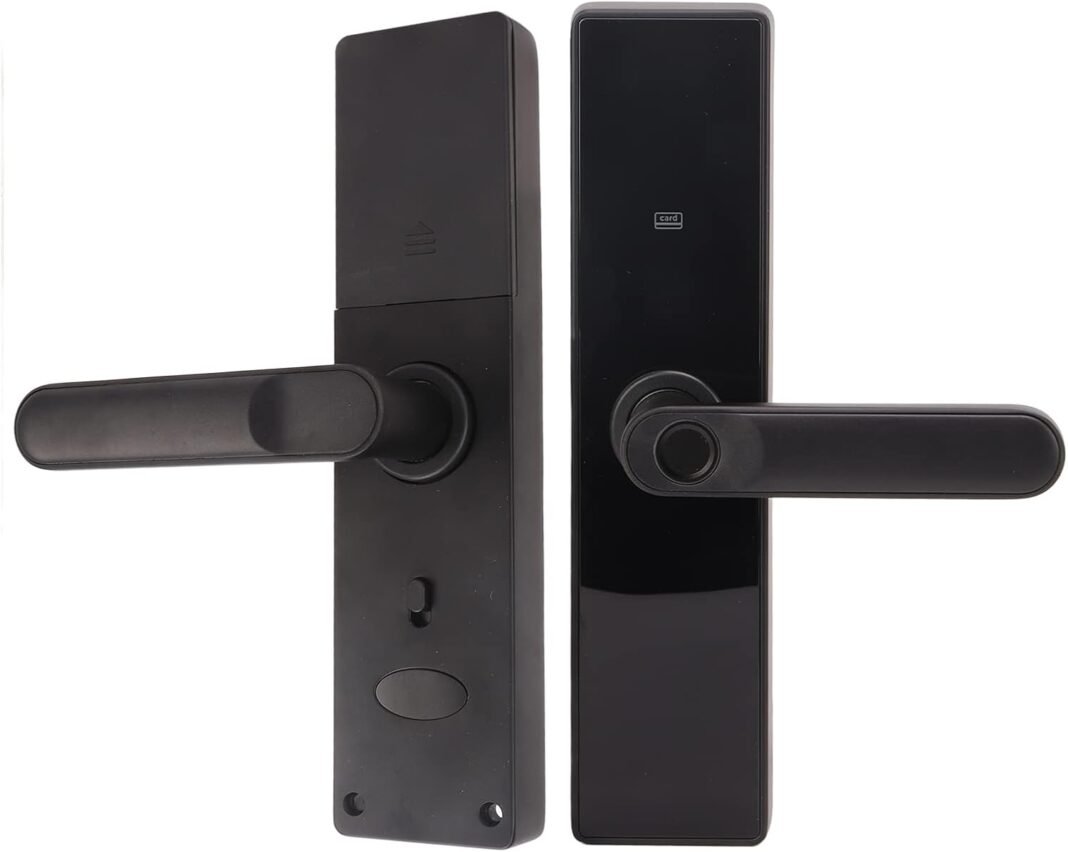 IDENTIFICACIÓN DE HUELLAS DACTILARES Y TARJETAS IC: WiFi Sensible Door Lock adopta un lector de huellas dactilares semiconductor, extremely preciso y extremely rápido; La tarjeta magnética cifrada se abre al tocarla, lo que facilita su transporte y uso.