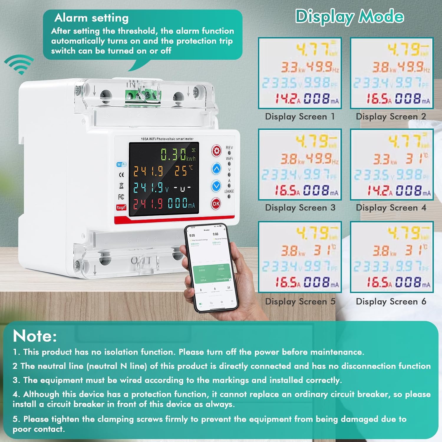 Diseño de carril DIN: medidor de potencia carril DIN wifi 35mm estándar de montaje en carril DIN con pantalla LCD a shade proporciona resultados de medición claros y fáciles de leer; Tamaño pequeño, peso ligero, instalación sencilla y cómoda, alta fiabilidad.