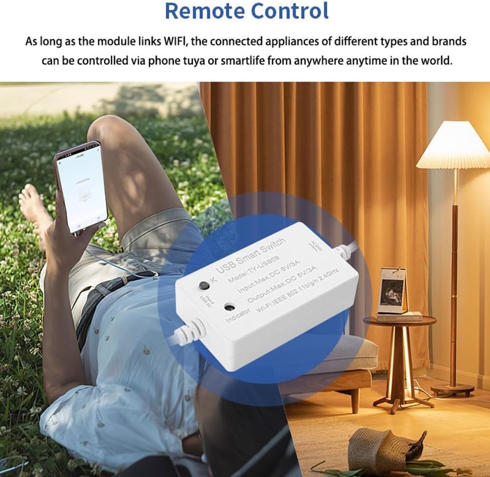 Suitable Con Management de Voz: Este Controlador Wifi Inteligente USB Soporta un COMODO CONTROL DE VOZ A TRAVÉS DE APLICACIONES DE TERCEROS. Proporciona una experimentia sin complicaciones con el enlace de Fuente de Alimentació USB y No Requiere Cableado.