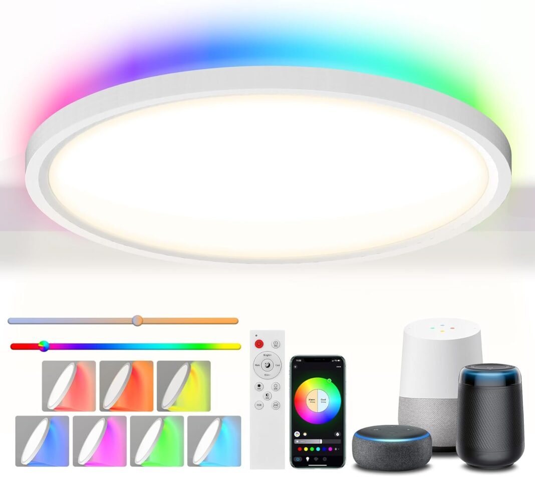 Wilktop Alexa Plafon LED Techo, Lámpara de techo inteligente Suitable con Google,Alexa, 2400LM,24W 6500K RGB Retroiluminación Lámpara de techo con management de voz/App,Lámpara de techo led
