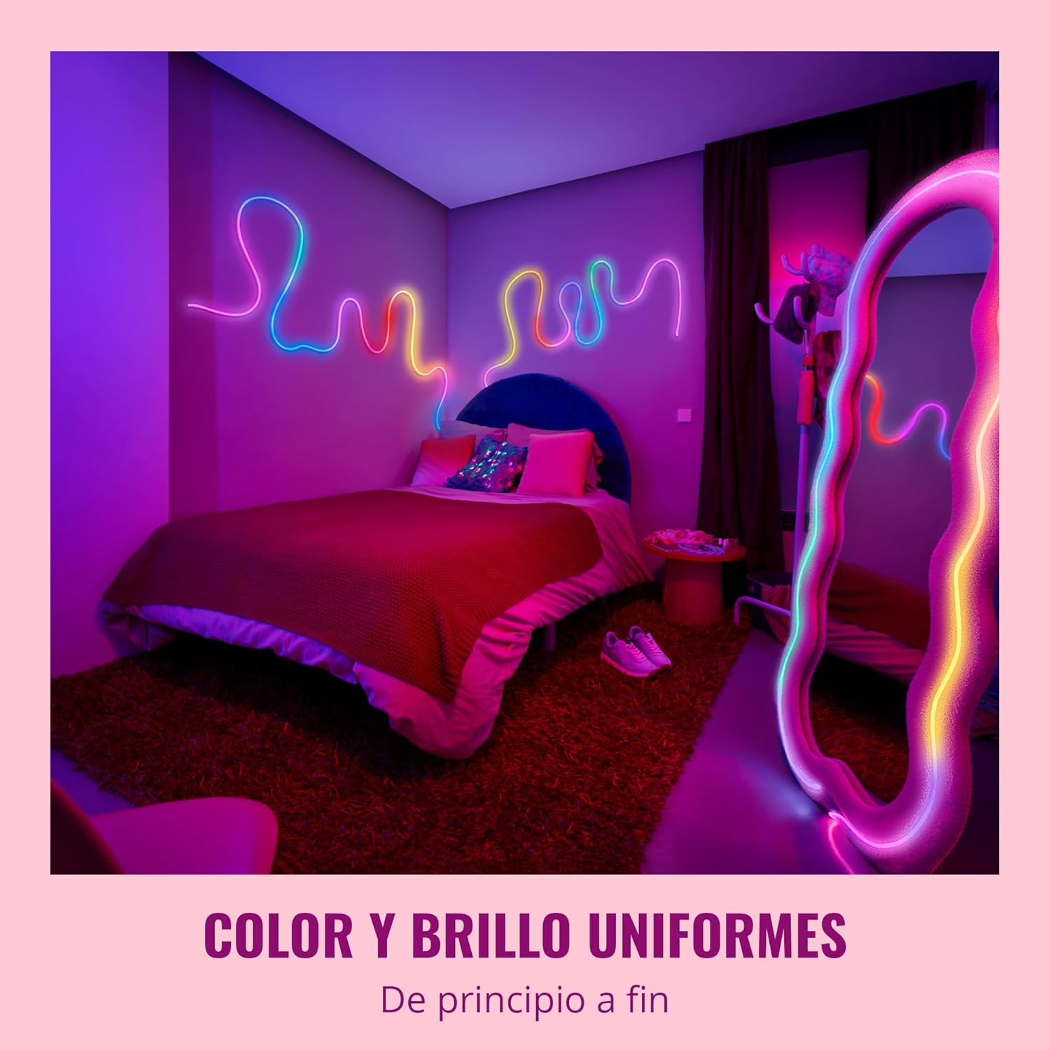 FLEXIBLE: da rienda suelta a tu creatividad y dale a Tira Led inteligente WiZ Neon Flex la forma que desees. Cuanto más larga sea la tira, más podrás jugar con ella. Elige entre más de 16 millones de colores y tonos de luz blanca para crear el ambiente perfecto para lo que hagas en casa.
