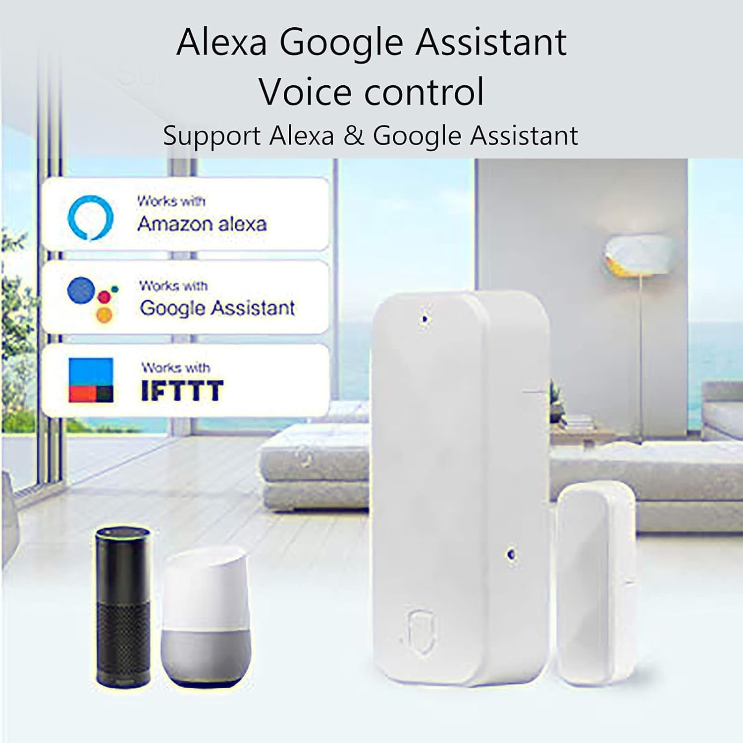 Wolf-Guard MC-W01 Sensor de puerta inalámbrico inteligente 2.4G WiFi Detectores abiertos/cerrados de ventana de puerta Sensor de seguridad de alarma para el hogar Management de aplicaciones, suitable con Alexa y Google Assistant e IFTTT