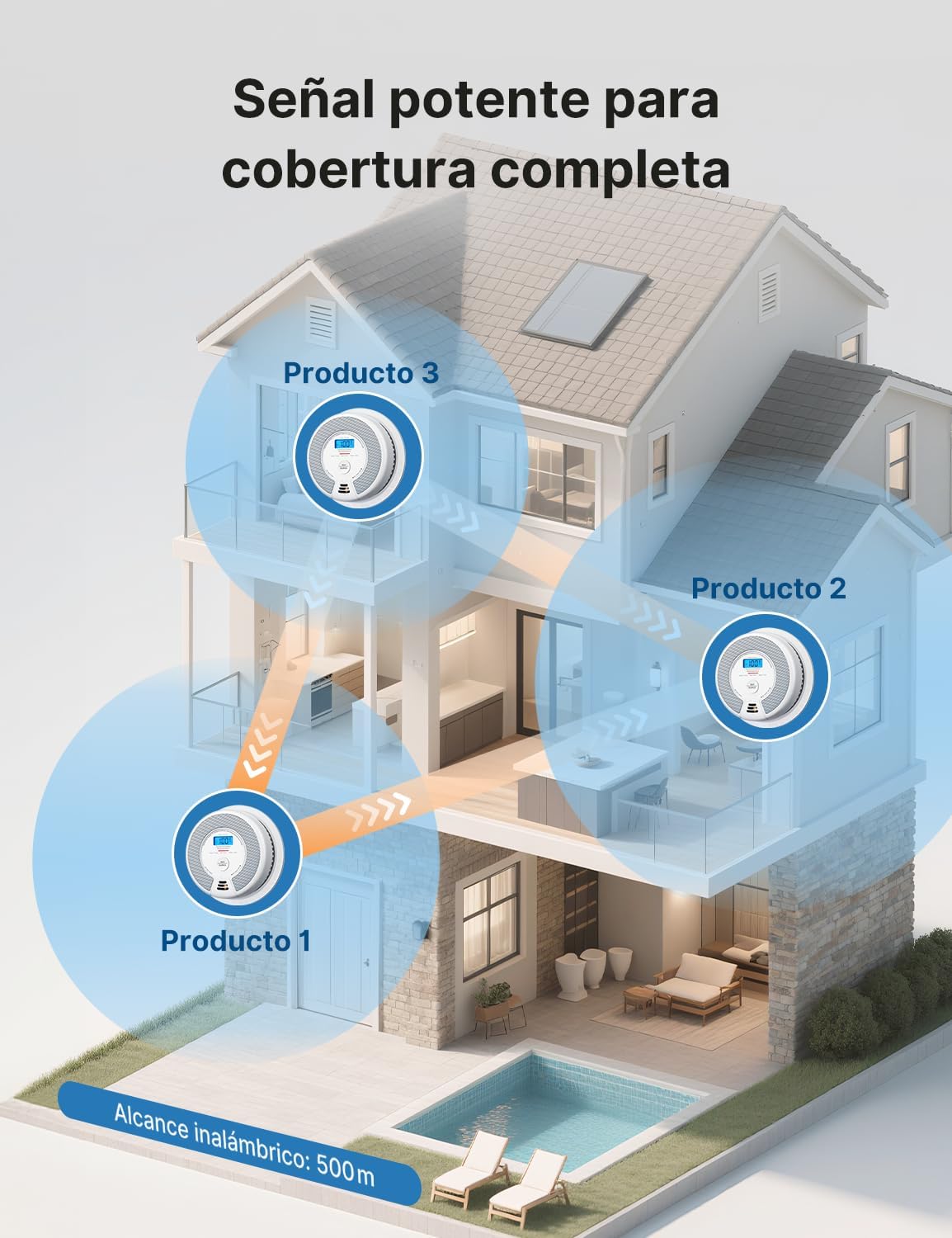 Protección 2 en 1: Equipado con un sensor de humo de CO fotoeléctrico y electroquímico para brindar una protección confiable contra el humo y el CO.