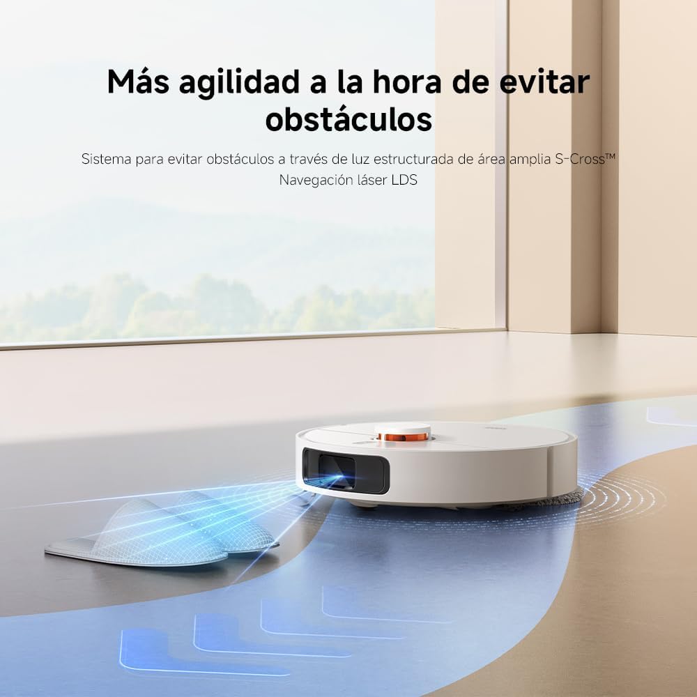 【Tecnología S-Cross Gran Angular】Para evitar mejor los obstáculos. Gracias al escaneo de 360°, los mapas se generan rápidamente y se pueden limpiar varias plantas con una sola carga.