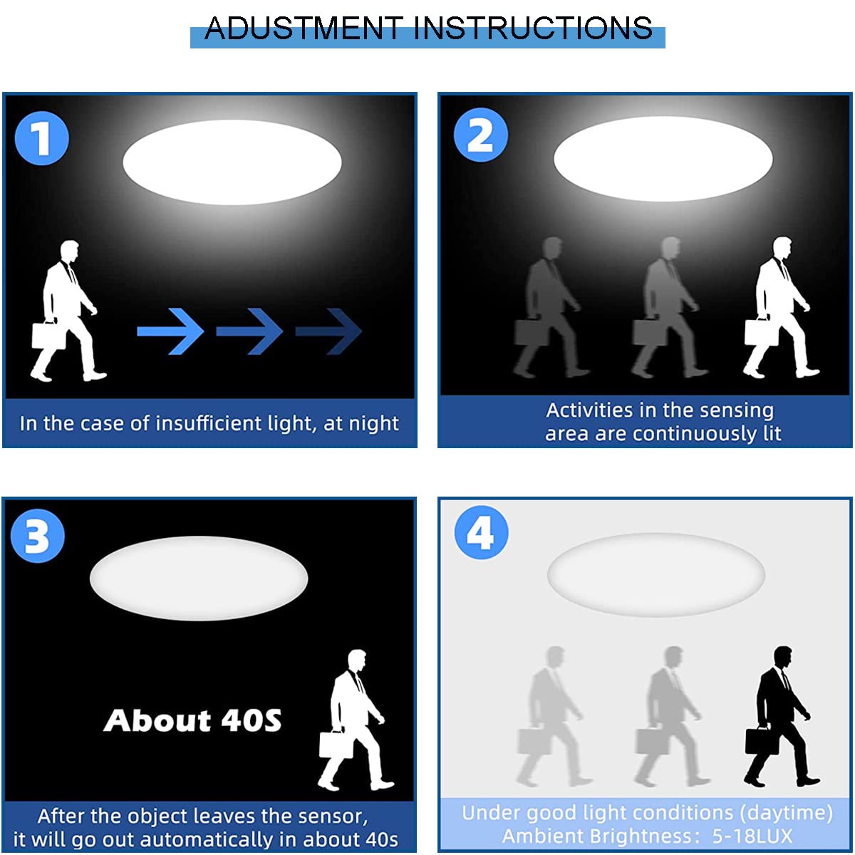 【Ajustable】: La Distancia de Detección es Ajustable, Que se Puede Ajustar Según El Lugar de Uso; El Tiempo de Iluminació de la Luz es Ajustable, Que Puede Ser Ajustado por El UsUario de Acuerdo Con Las Condicaciones Locales.