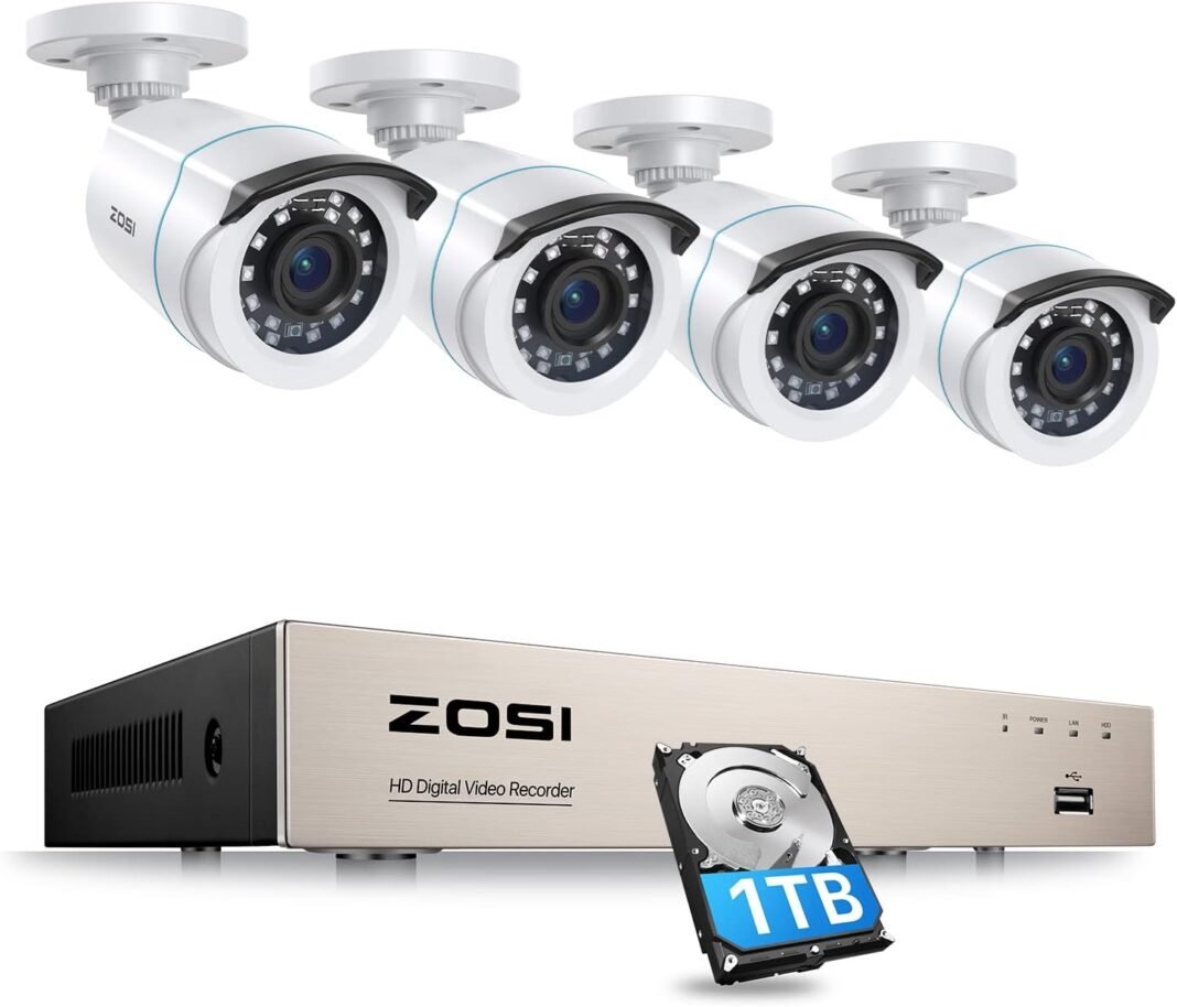 (Sistema de vigilancia de 2MP) DVR HD-TVI de 8 canales 1080P + 4 cámaras CCTV impermeables de 2.0MP + HDD de 1TB. Fácil de instalar. Y la imagen del vídeo es súper clara.